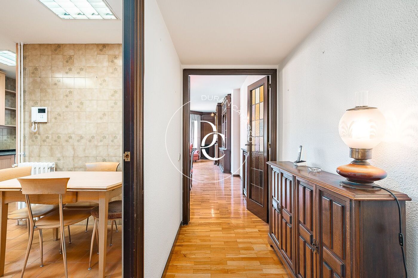 La zona de día ofrece un amplio y luminoso salón-comedor con chimenea y acceso directo a una de las terrazas. Gracias a su orientación y altura, disfruta de vistas despejadas a elegantes fincas modernistas de la zona y a la Sagrada Familia. El salón cuenta con suelo de parquet y la cocina, espaciosa y funcional, se conecta con la zona de lavandería mediante una puerta independiente.