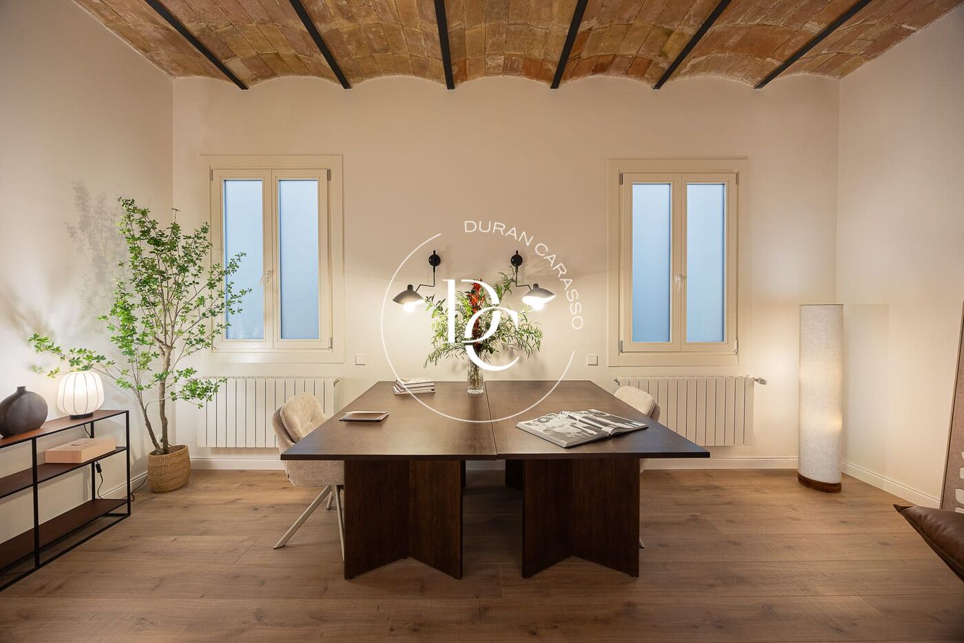 Se trata de un cuarto piso real con abundante luz natural, especialmente en el amplio espacio de salón-comedor-cocina y en la suite principal. La rehabilitación combina el encanto de la arquitectura clásica con el confort contemporáneo, recuperando elementos originales como la volta catalana y utilizando materiales de alta calidad en cada detalle.