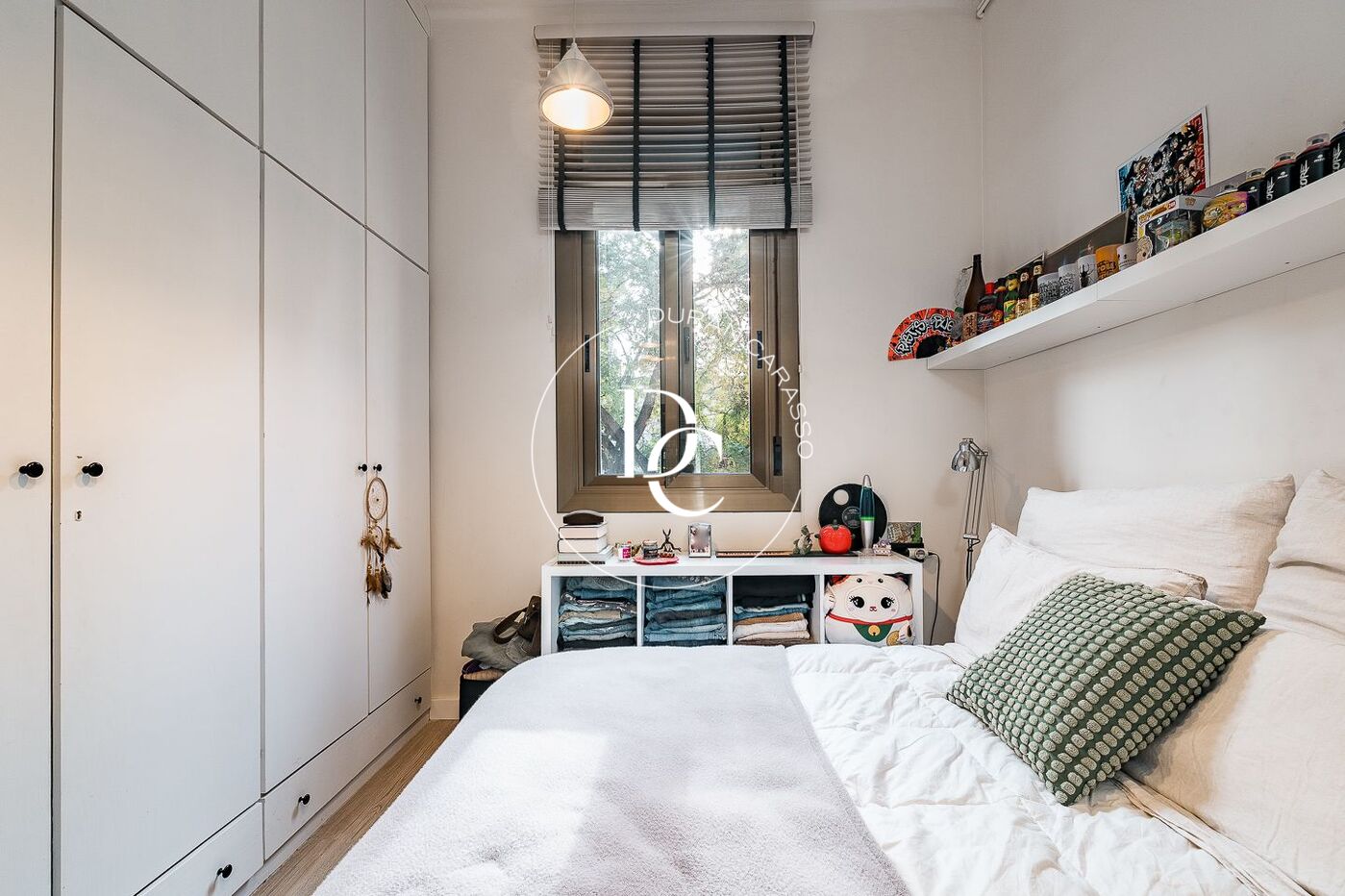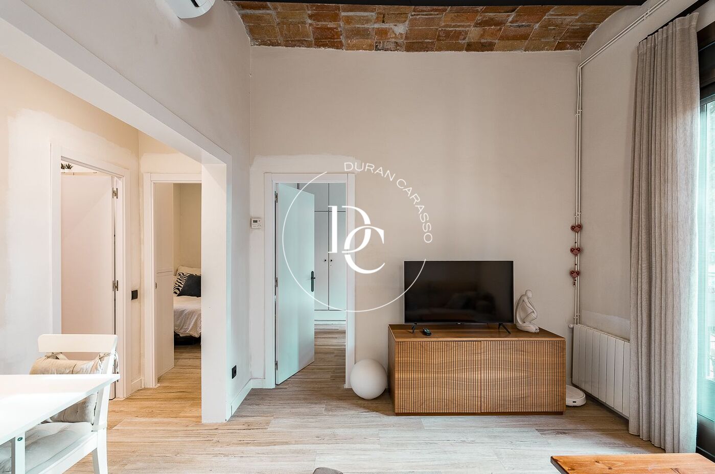 La propiedad cuenta con 93 m² construidos, de los cuales 74 m² son útiles, y se complementa con una agradable terraza posterior de 25 m² que incorpora un trastero y un estudio independiente, aportando un valor añadido difícil de encontrar en esta zona de la ciudad. La vivienda logra un equilibrio perfecto entre el encanto de la arquitectura tradicional y el confort actual, creando un hogar con carácter propio en una de las áreas más dinámicas y cotizadas de Barcelona.