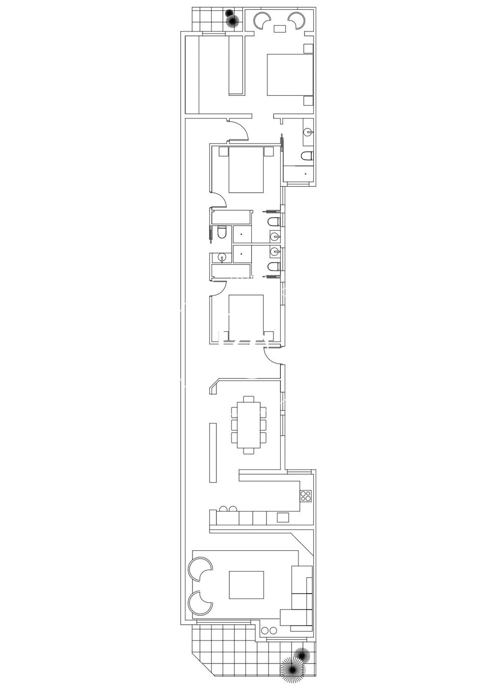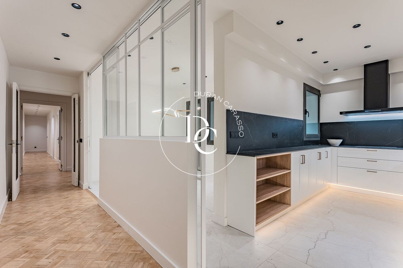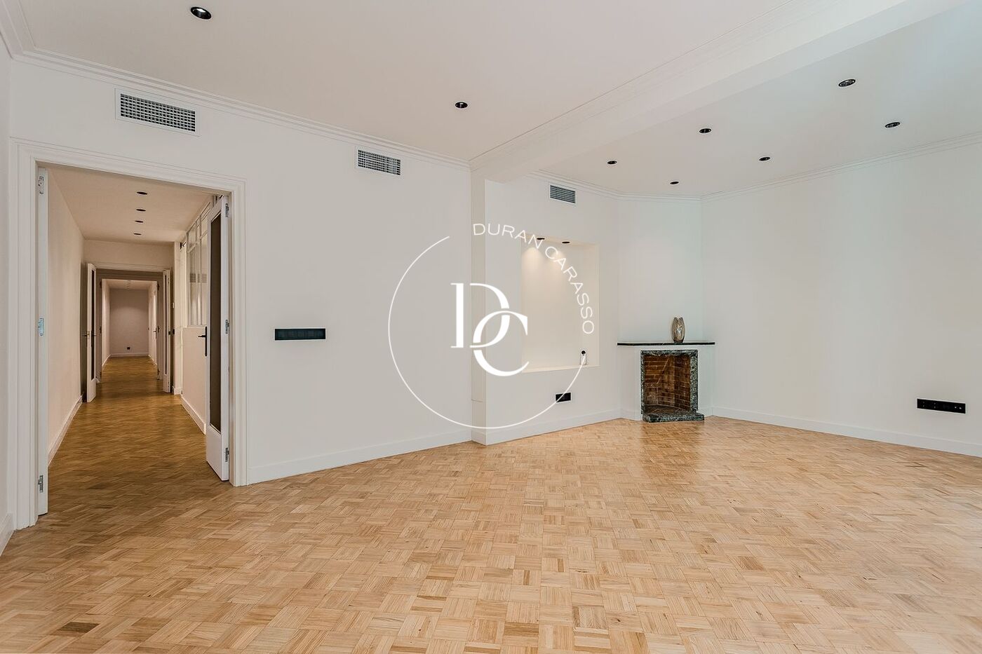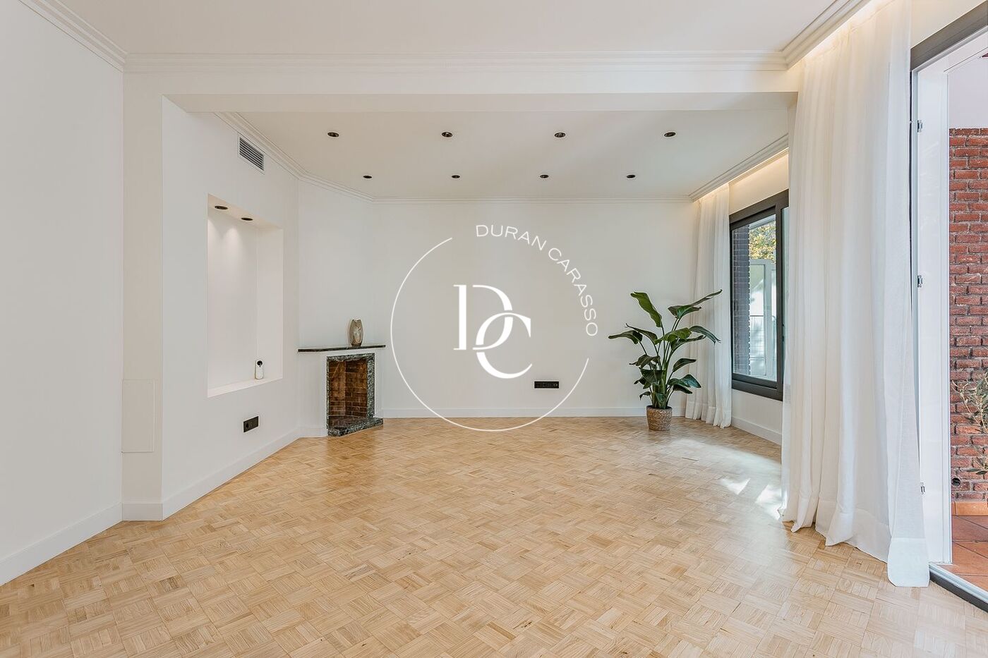 Con una superficie de 173 m², la propiedad ofrece una distribución funcional que diferencia claramente la zona de día del área de descanso. Un amplio vestíbulo conduce a un salón-comedor de generosas proporciones, presidido por una chimenea y grandes ventanales que se abren a una terraza de 8,5 m² con agradables vistas a Enric Granados. La cocina independiente, totalmente equipada con electrodomésticos de alta gama, se conecta con un comedor diario y un lavadero diferenciado. La zona de noche alberga tres amplias suites, todas con baño privado, además de un aseo de cortesía. La suite principal cuenta con un elegante vestidor y acceso a un balcón orientado al tranquilo patio de manzana.