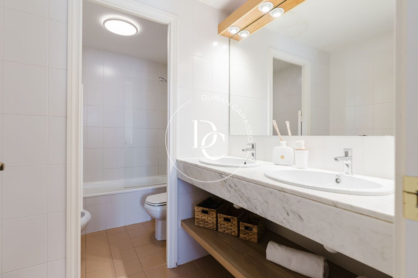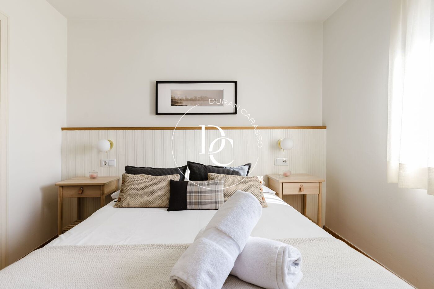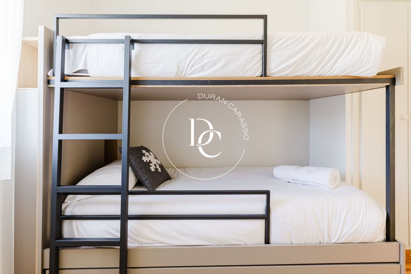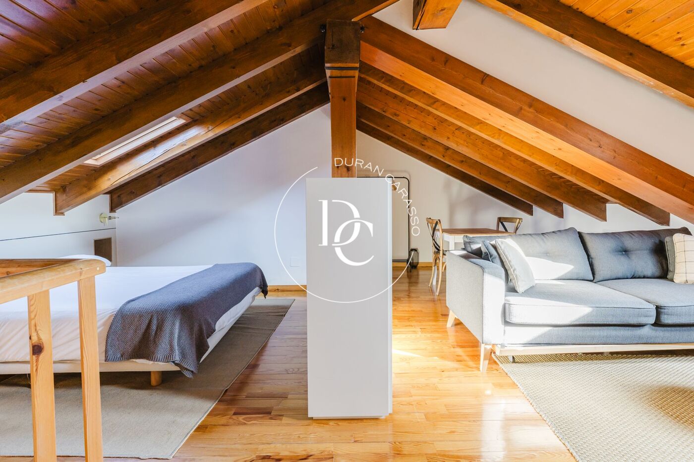 L’interior de l’habitatge es distribueix en quatre habitacions, totes amb armaris encastats, tres banys complets —un d’ells en suite— i un lavabo addicional. Les golfes, un espai diàfan amb llit de matrimoni, sofàs, zona de lectura i televisió, aporten un ambient càlid i versàtil.