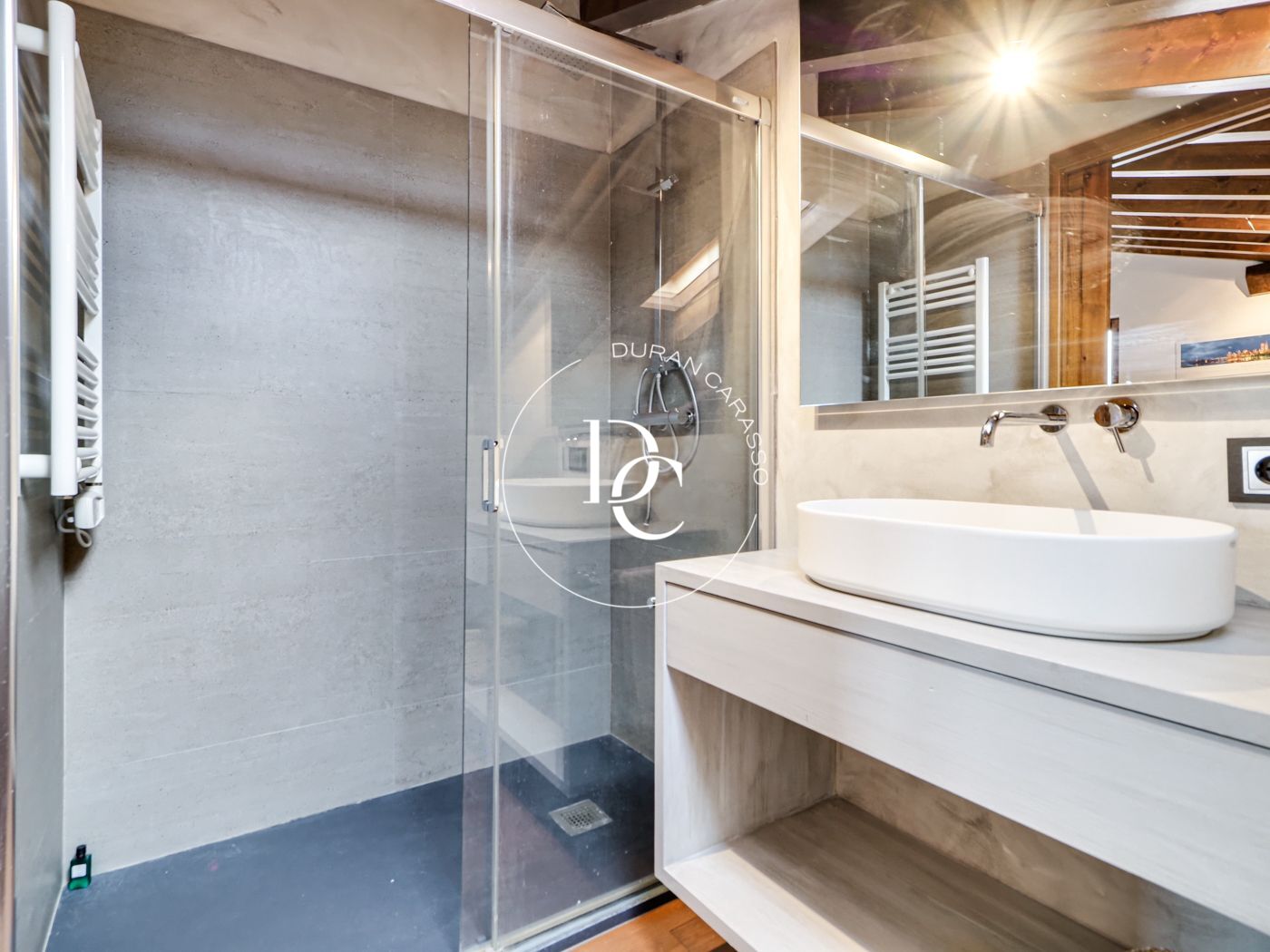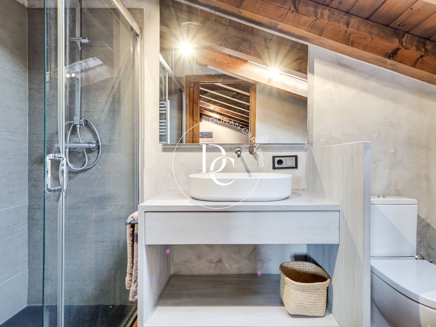 La planta inferior, a la que se puede acceder tanto por escaleras interiores como por una entrada independiente, dispone de tres amplias habitaciones dobles con acceso directo a una terraza con vistas al Parque Natural del Garraf, una cocina americana y dos baños completos.