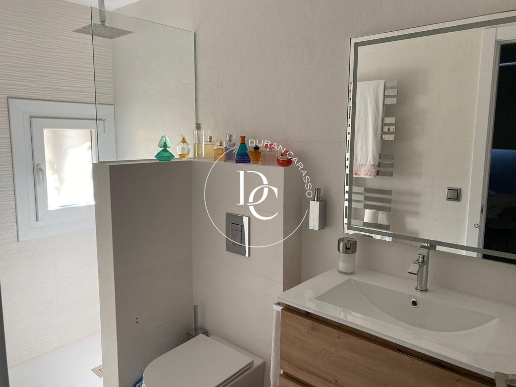 Located in La Levantina, a good residential and quiet neighborhood a few minutes from the center of Sitges, this recently built house with sea views from all rooms is located. The access from the street gives to a parking with capacity for 4 vehicles and a small warehouse. The first floor consists of a multifunction room. The upper floor consists of 3 suite rooms and a living room connected with a terrace and direct access to the pool. On the upper floor there is the main living room with sea views and fireplace, a suite room, the kitchen and another terrace. The last floor is a diaphanous space that, in addition to a front terrace with 360- views of the sea and the Garraf massif, also has a back terrace with gardens and trees. The finishes of the house are of the best quality and every detail is perfectly taken care of.