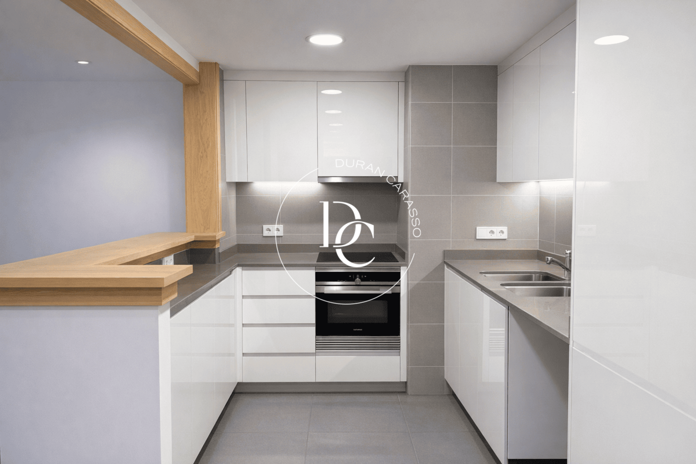 The kitchen is open to the living-dining area, fully equipped with Siemens appliances, and includes a separate laundry area. The living room stands out for its spaciousness and natural light.
