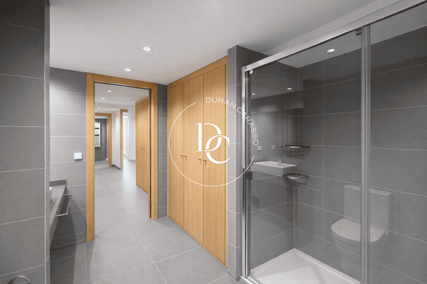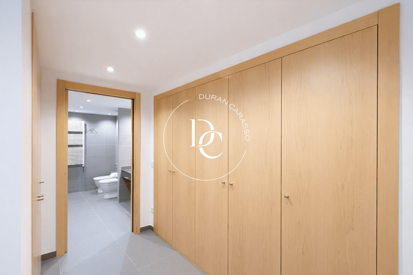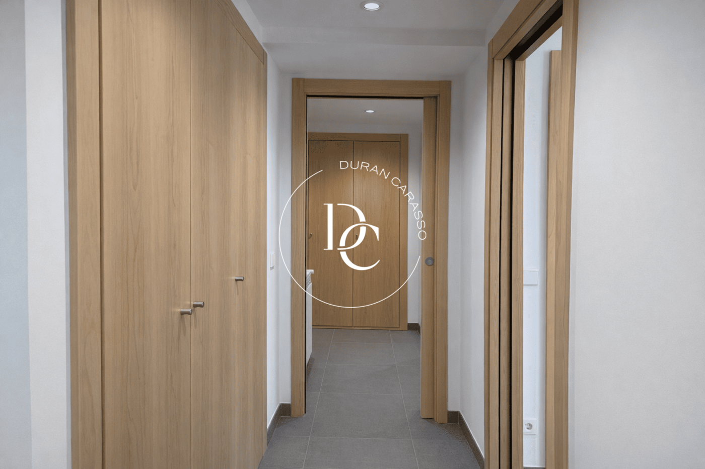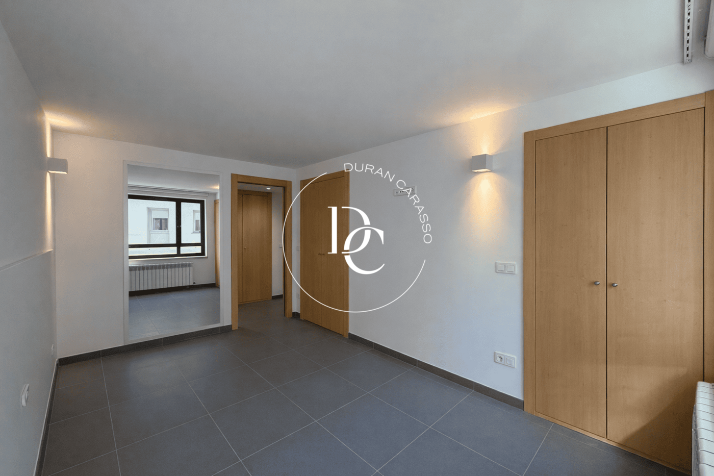 The apartment offers multiple built-in wardrobes providing excellent storage capacity. Finishes are modern, with porcelain flooring and light-toned carpentry.