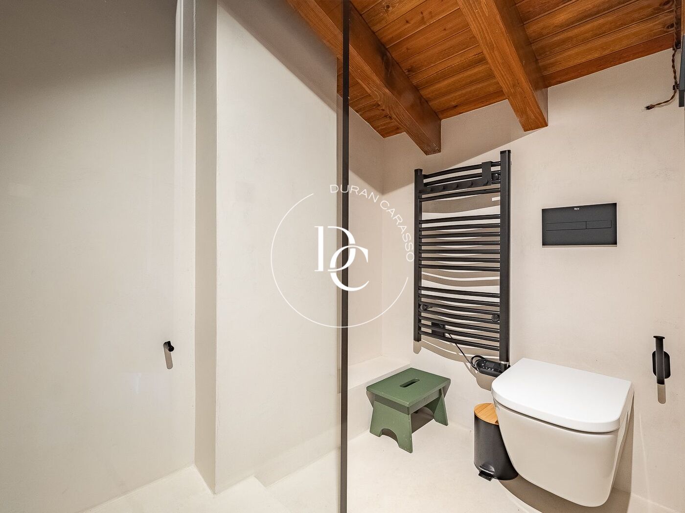 The house is composed of three floors with private garden and a communal area with swimming pool ideal for summer. On the first floor, at street level, we find the living room with open double height kitchen and a courtesy bathroom.