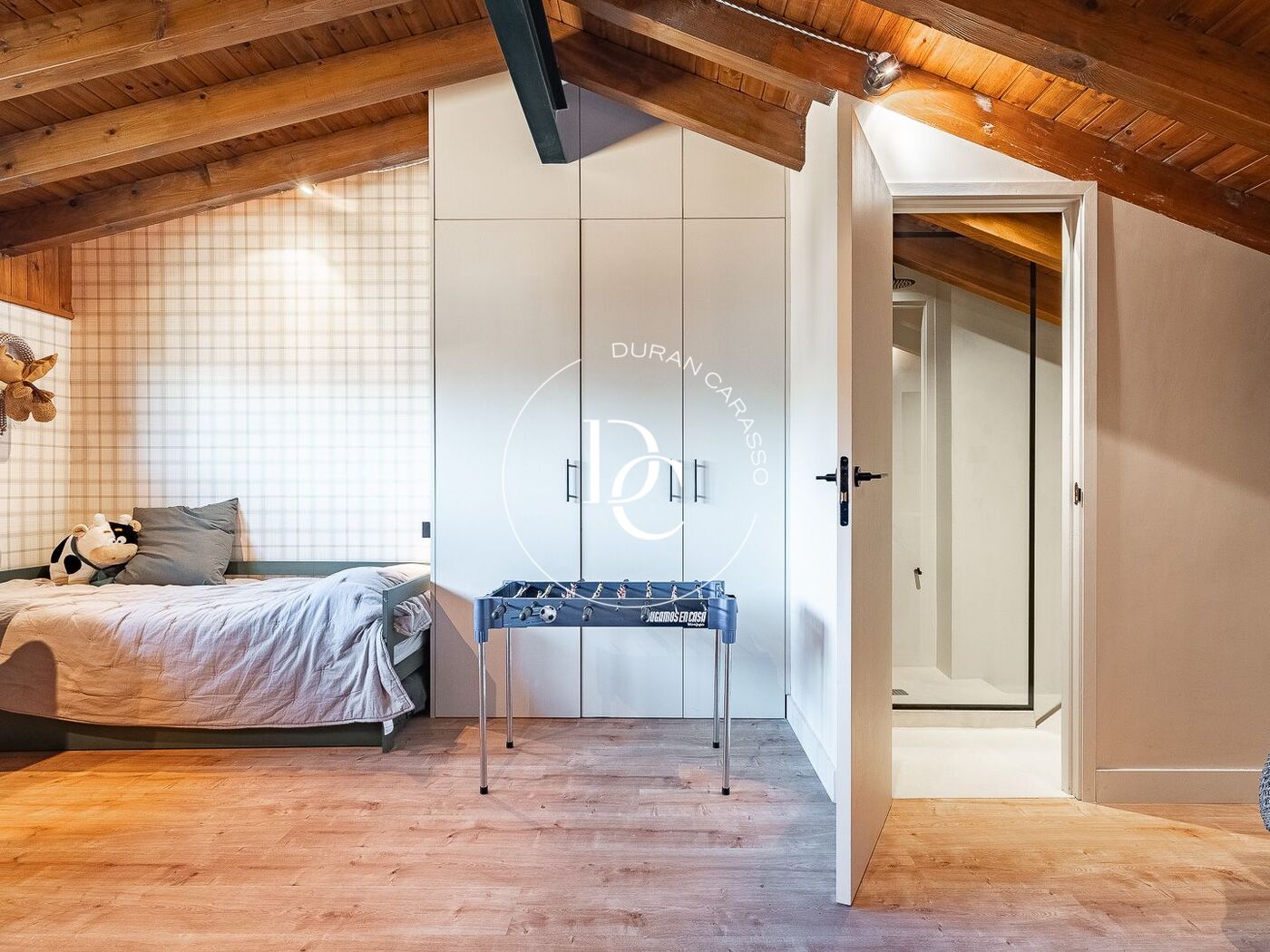 On the second floor we have three bedrooms, two of them double, a suit type with access to the balcony and another single room. On this floor we also have a full bathroom.