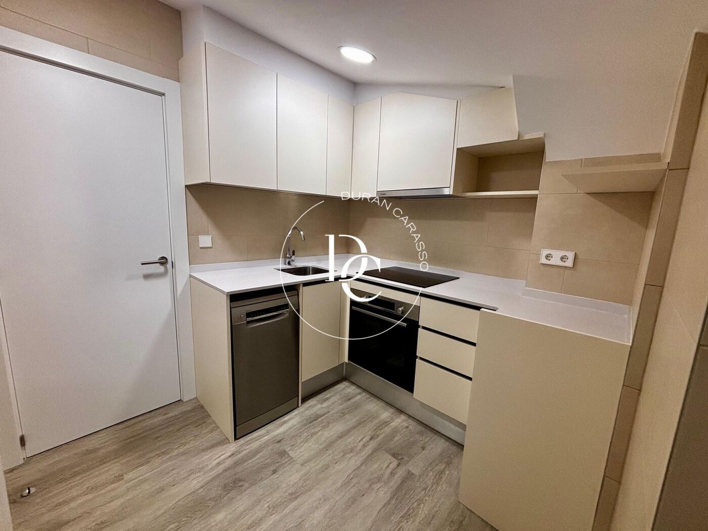 Le séjour est spacieux et baigné de lumière naturelle grâce à de grandes baies vitrées, créant une atmosphère agréable tout au long de la journée. La cuisine, entièrement équipée avec plaque vitrocéramique, four, hotte et lave-vaisselle, dispose également d’un espace buanderie pratique, idéal pour le quotidien.