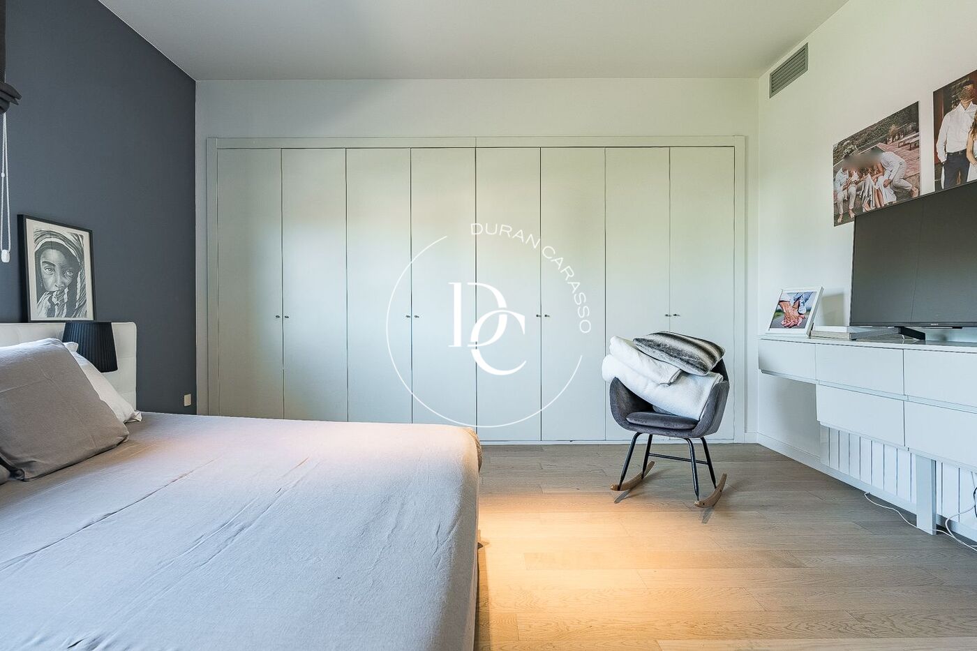 Au premier étage, nous découvrons la chambre principale, qui s'étend sur toute la maison, offrant une vue sur la mer depuis la terrasse de la chambre et sur le jardin depuis la terrasse de la salle de bain. La chambre est équipée d'un lit king size entièrement rembourré, d'un minibar, d'une télévision plasma, d'un coffre-fort et de placards intégrés dans une zone de type dressing très spacieuse avec beaucoup d'espace de rangement.