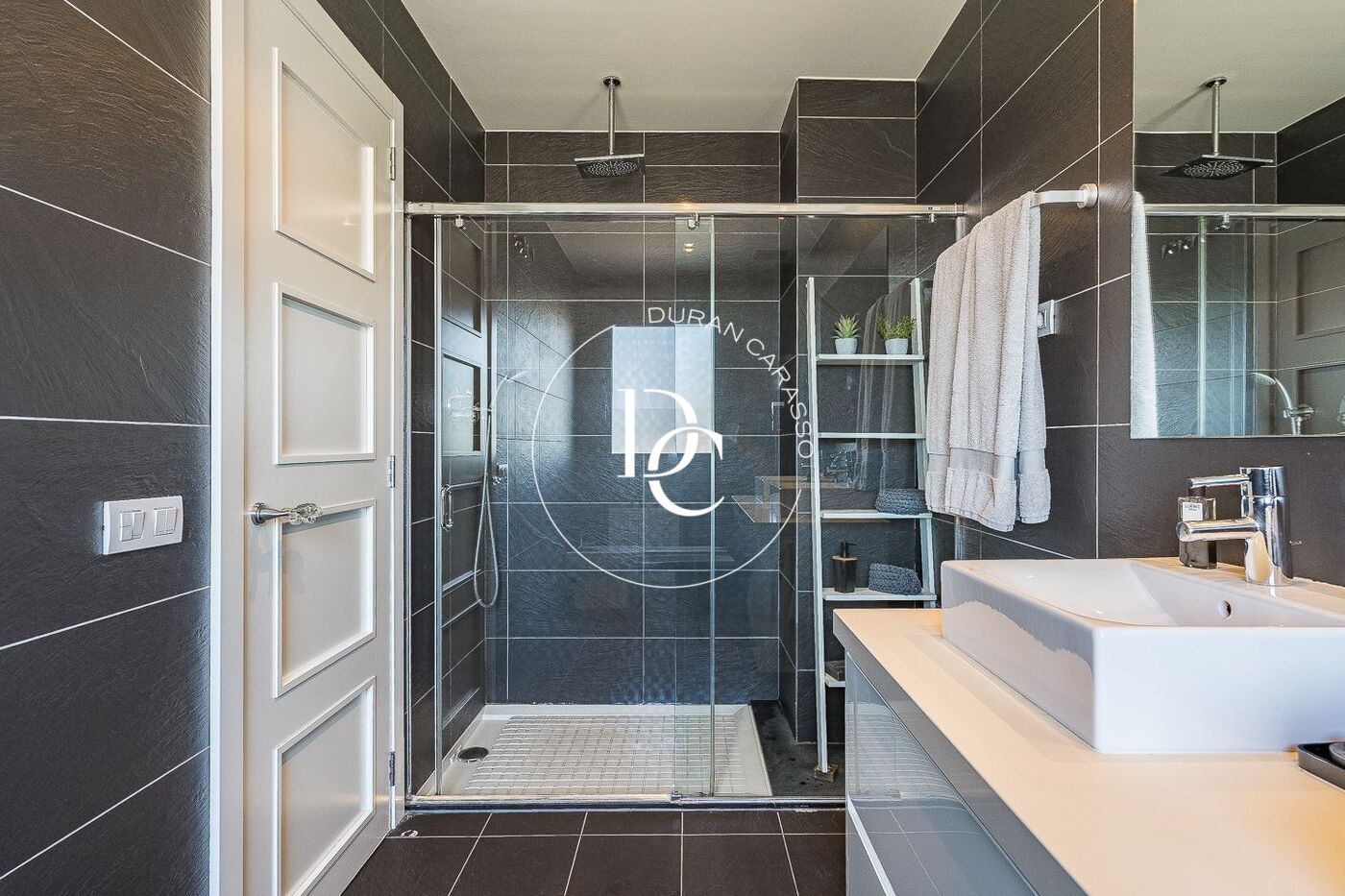 D'une part, la villa principale comprend 6 chambres réparties sur 3 étages. Tout d'abord, nous trouvons le rez-de-chaussée, où, depuis l'entrée spectaculaire de la villa, nous accédons à un grand salon très spacieux, qui dispose d'une salle d'accueil séparée. Le sol en marbre poli nous guide à travers l'intérieur jusqu'à découvrir les vastes et luxueuses zones de vie au design impeccable de plan ouvert, qui apportent de la luminosité aux pièces, faisant des vues sur la mer un élément central.