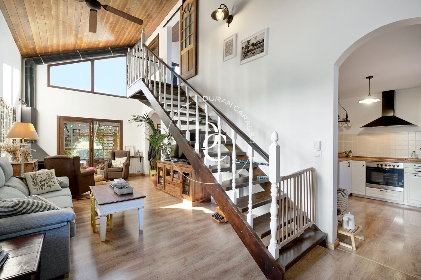 La maison principale, répartie sur deux étages et offrant 180 m² construits, propose une distribution équilibrée et fonctionnelle. Au rez-de-chaussée, on trouve deux chambres doubles, une cuisine ouverte, un spacieux salon et une salle de bain. De plus, toutes les pièces de cet étage disposent de plusieurs fenêtres apportant de la lumière naturelle tout au long de la journée. À l’étage supérieur se trouvent un bureau, une chambre double et une autre salle de bain.