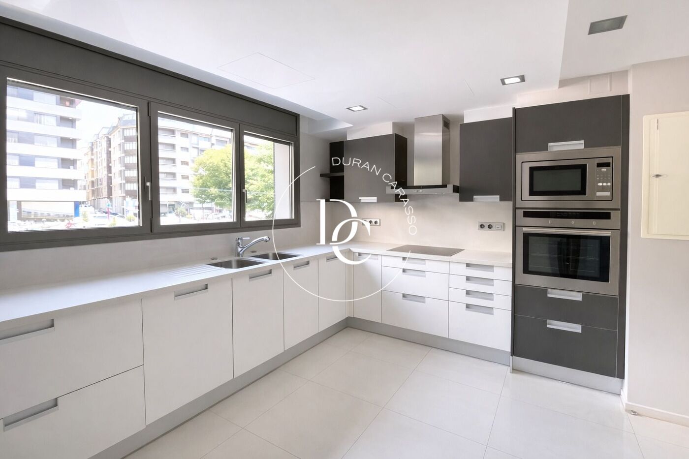 La cocina equipada de diseño italiano es moderna y funcional, con electrodomésticos de alta gama: nevera americana de doble puerta (frigorífico y congelador), placa de inducción, horno, microondas y campana extractora de acero inoxidable. El salón-comedor, amplio y acogedor, dispone de grandes ventanales que aportan abundante luz natural y crean una agradable sensación de amplitud.