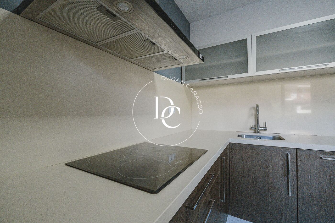 En la planta baja encontramos una cocina independiente totalmente equipada, un baño completo con plato de ducha y un amplio salón-comedor muy luminoso, con suelo de madera y pared de pizarra, que le confieren un ambiente cálido y acogedor. El salón tiene salida directa mediante grandes ventanales al encantador jardín privado de dos niveles, en el primer nivel se encuentra un porche con toldo corredero, ideal para comidas o cenas al aire libre, y bajando dos escalones se accede a un bonito jardín de buen tamaño, perfecto para disfrutar del exterior. En la planta menos uno se ubica un garaje tipo box, práctico y funcional.