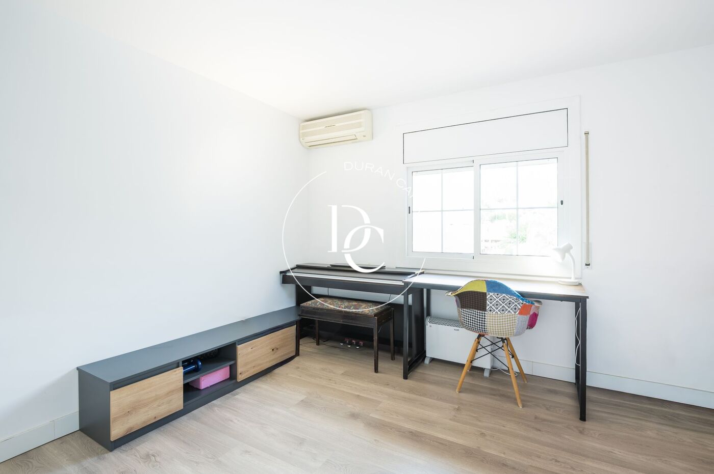 Finalmente, en la última planta baja hay un sexto dormitorio que se puede usar como sala de servicio, donde contarás con dos camas y un baño con ducha. La entrada a la sala de lavandería también se encuentra en esta planta.