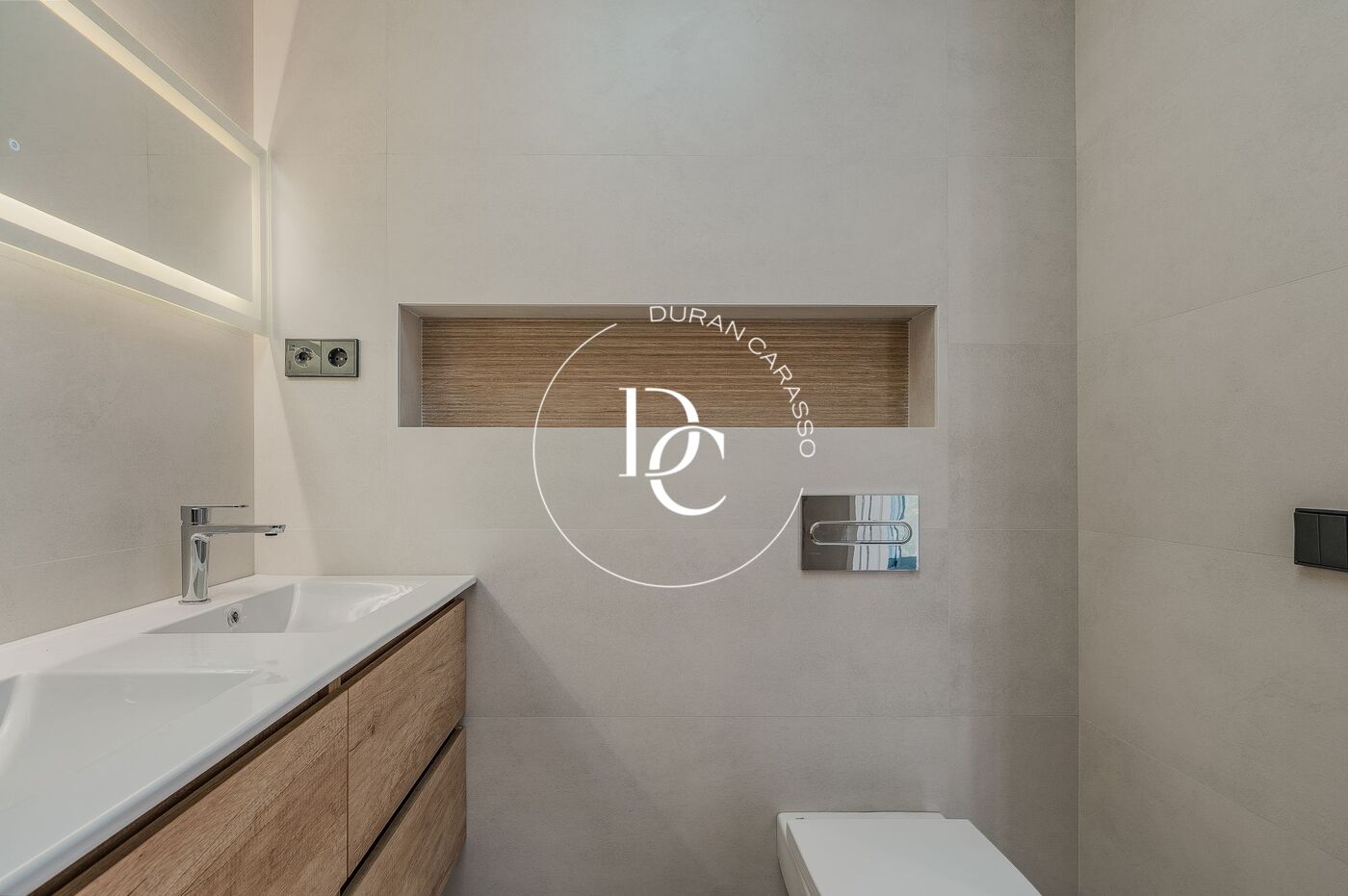 Por un lado, la villa principal cuenta con 6 dormitorios distribuidos en 3 plantas. En primer lugar encontramos la planta baja, donde desde la espectacular entrada de la villa accedemos a un gran salón muy espacioso, que cuenta con una sala de bienvenida separada. El suelo de mármol pulido nos conduce por todo el interior hasta encontrar las amplias y lujosas áreas de estar de impecable diseño de planta abierta, que aporta luminosidad a las estancias haciendo que las vistas al mar tomen gran parte del protagonismo.