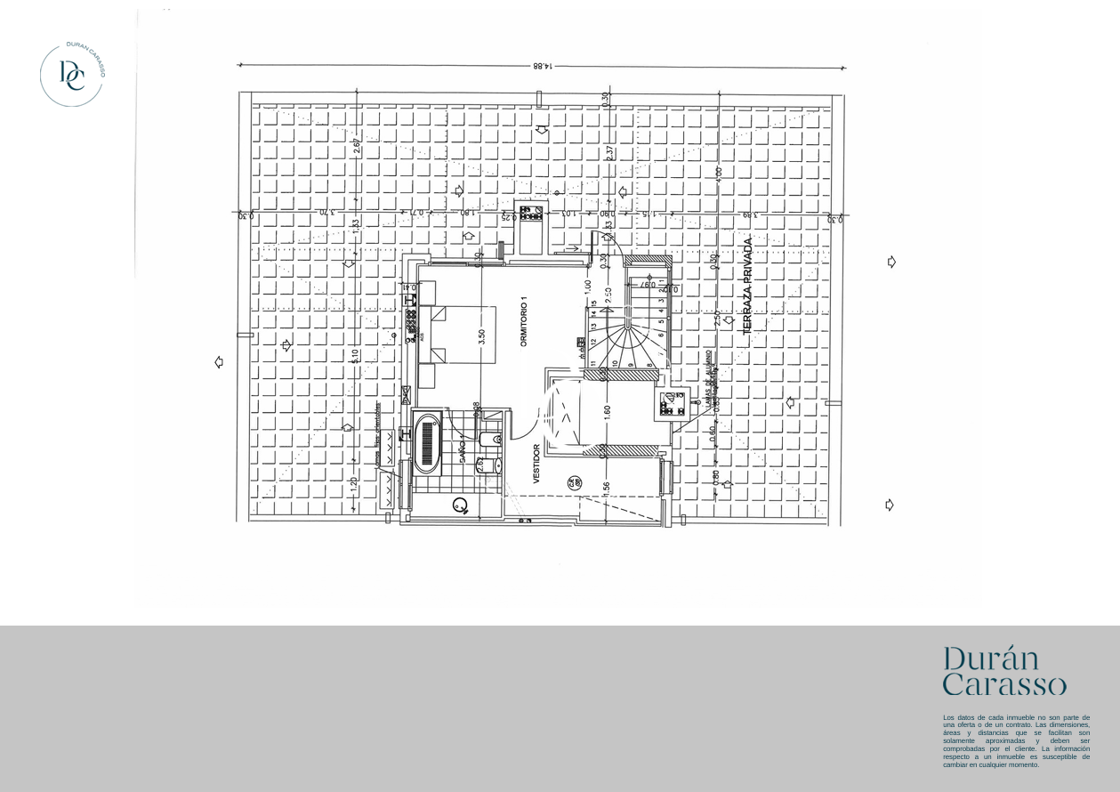 Una cómoda escalera nos lleva a la suite principal, un espacio que evoca tranquilidad y exclusividad con mucha luz natural. Está compuesta por dos estancias diferenciadas, vestidor, baño completo y una magnífica terraza privada de 87 m², perfecta para crear una zona chill-out o un oasis personal.